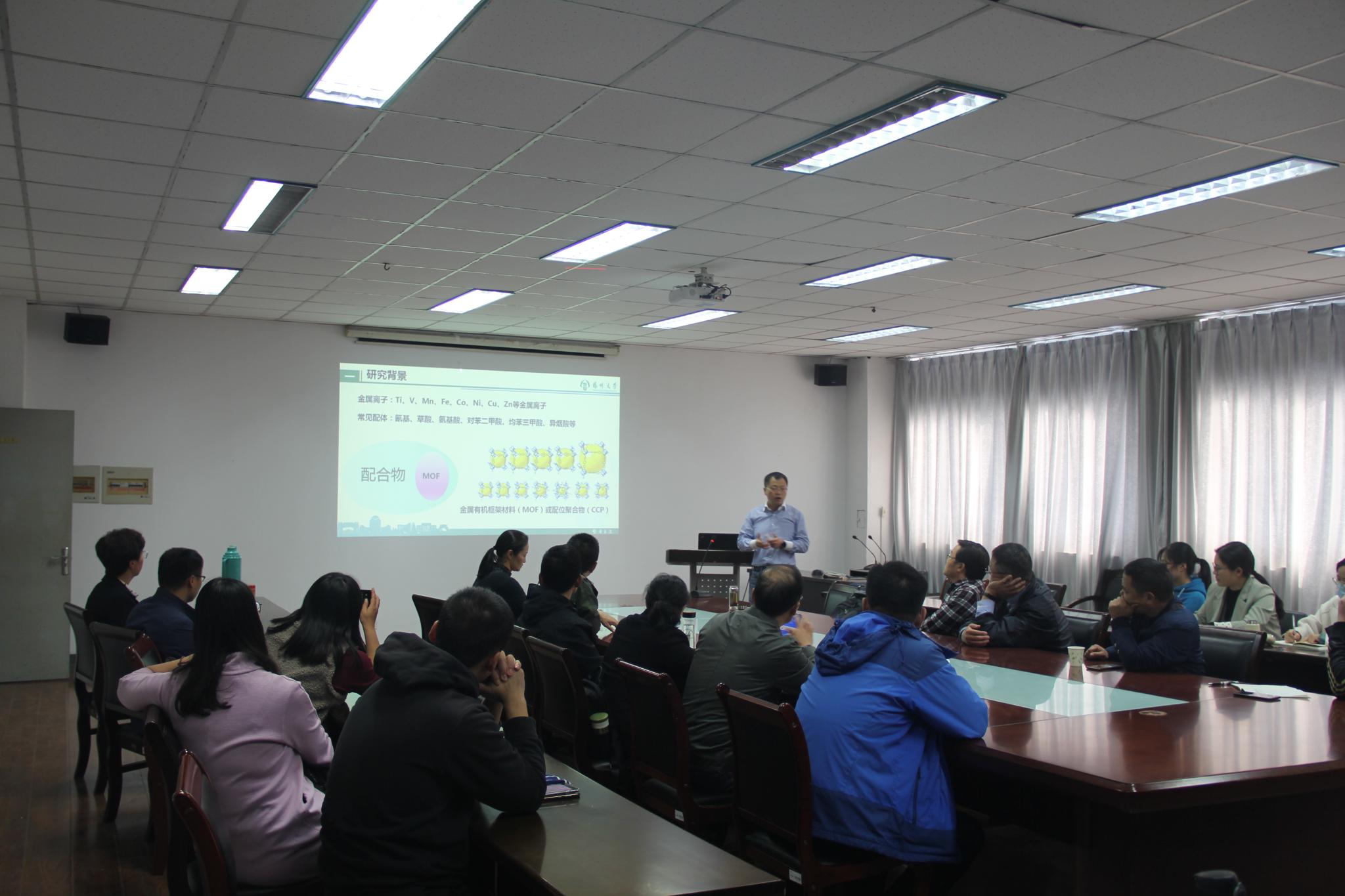 10月22日下午,扬州大学yd222云顶线路检测博士生导师庞欢教授,应邀在yd222云顶线路检测219会议室做题为《基于配合物框架材料的能源化学研究》学术报告。报告会由yd222云顶线路检测副经理张莉莉教授主持,yd222云顶线路检测部分老师和研究生参加了本次学术交流。