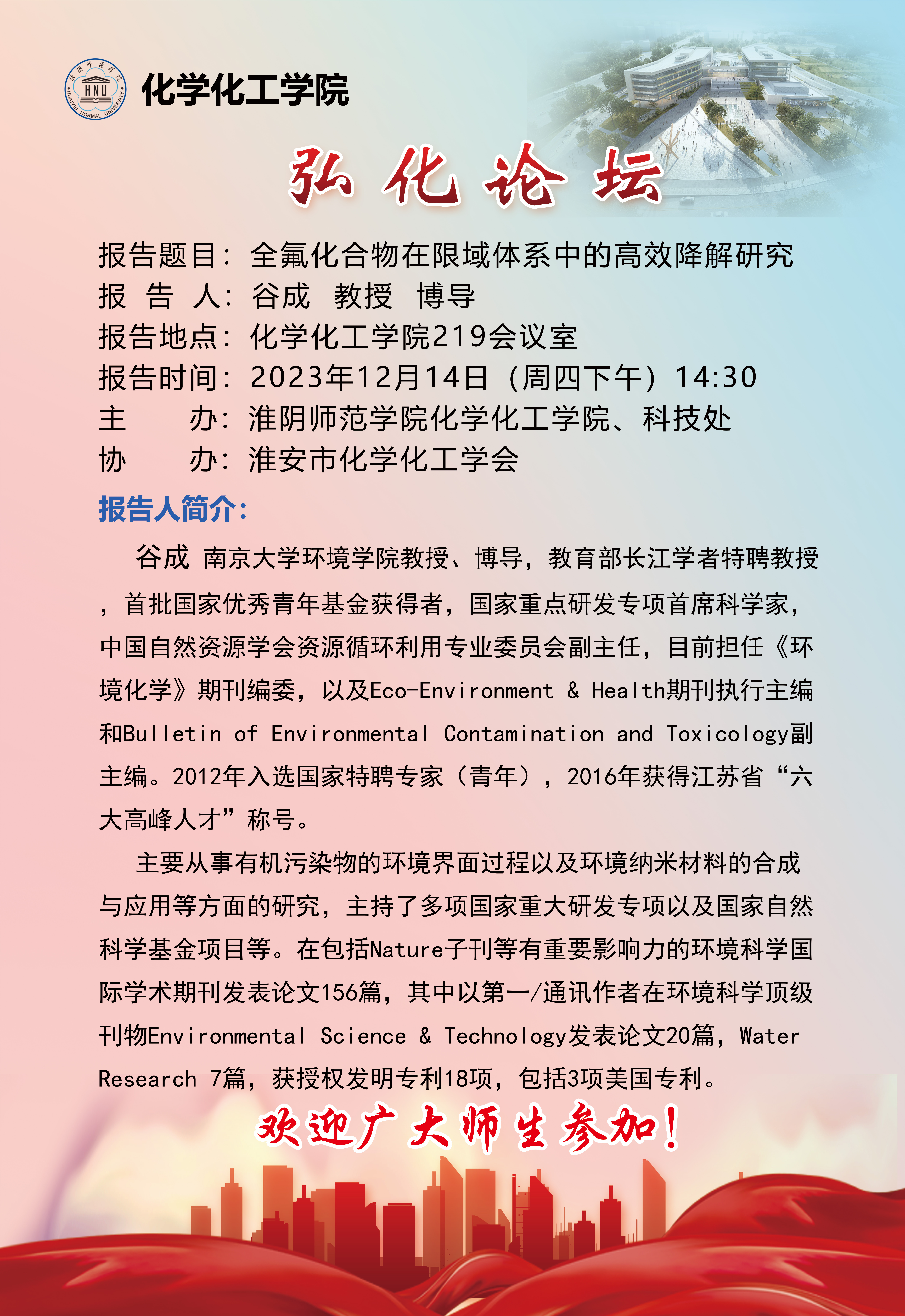 【弘化论坛】谷成:全氟化合物在限域体系中的高效降解研究
