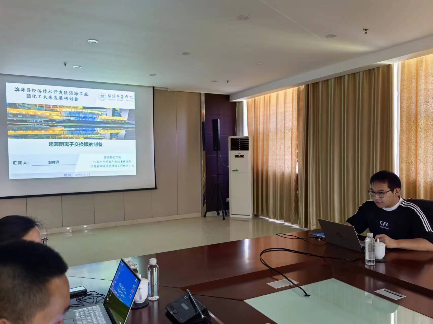 参观后,课题组与江苏省盐海化工有限公司、北京赛科康论环保科技有限公司等公司就离子膜、吸附剂等相关新材料在水处理、电解等领域的合作进行了交流。课题组邹修洋老师、翟娟博士对自己的研究方向做了推介。课题组并就如何开展深层次的产学研合作进行了会谈。