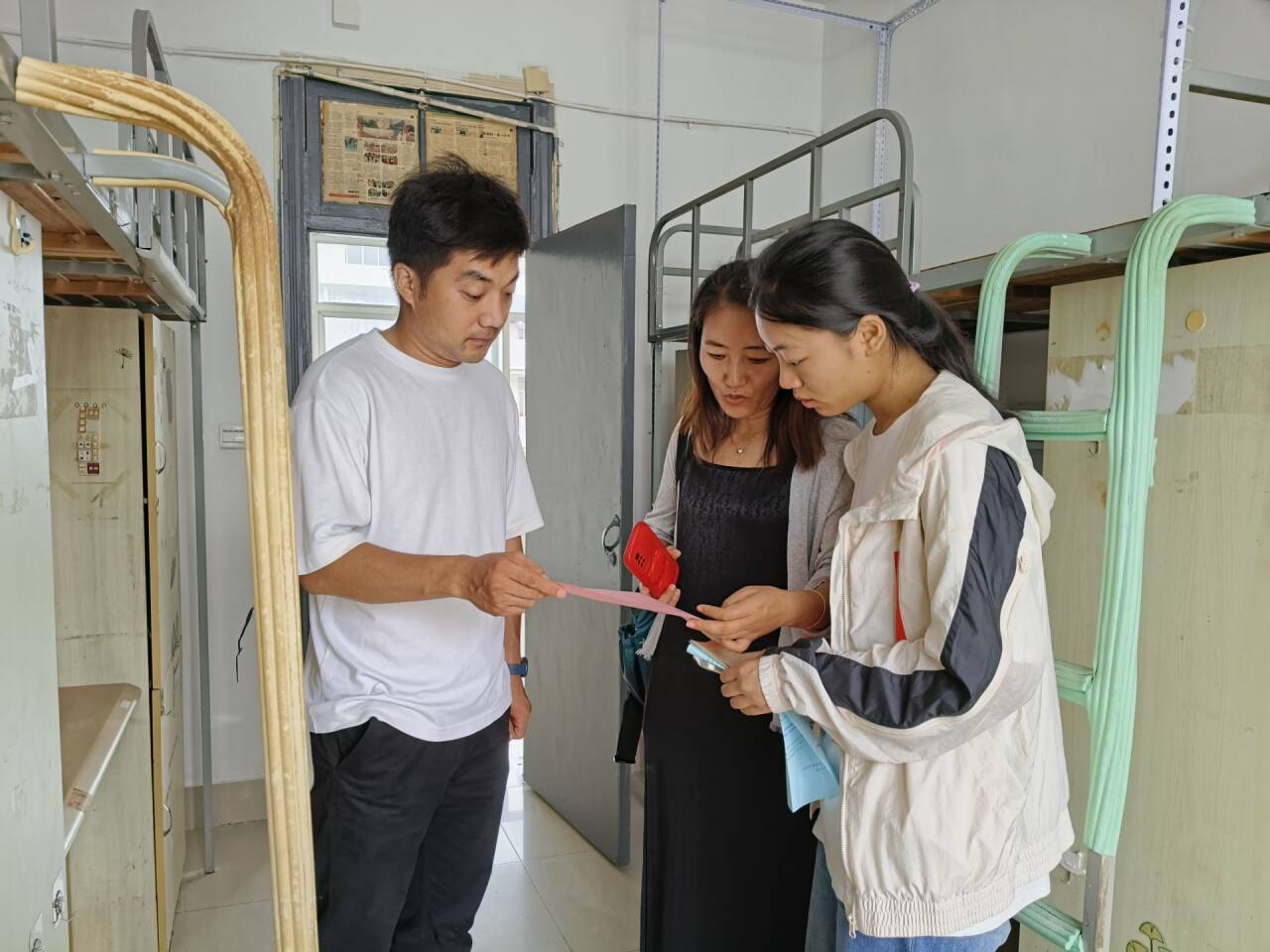 提起提前报到的原因,王雪纯同学说到:“我路途比较远,也想提前看看我的大学,感受大学氛围,尽早熟悉公司环境”。她表示,来到距离新疆四千公里以外的淮安上学,是自己第一次距离家乡这么远,难免会有一些思乡之情,但自己一定能够克服。随后李伟老师和志愿者一同将王雪纯送至宿舍,并为她办理了入住手续。