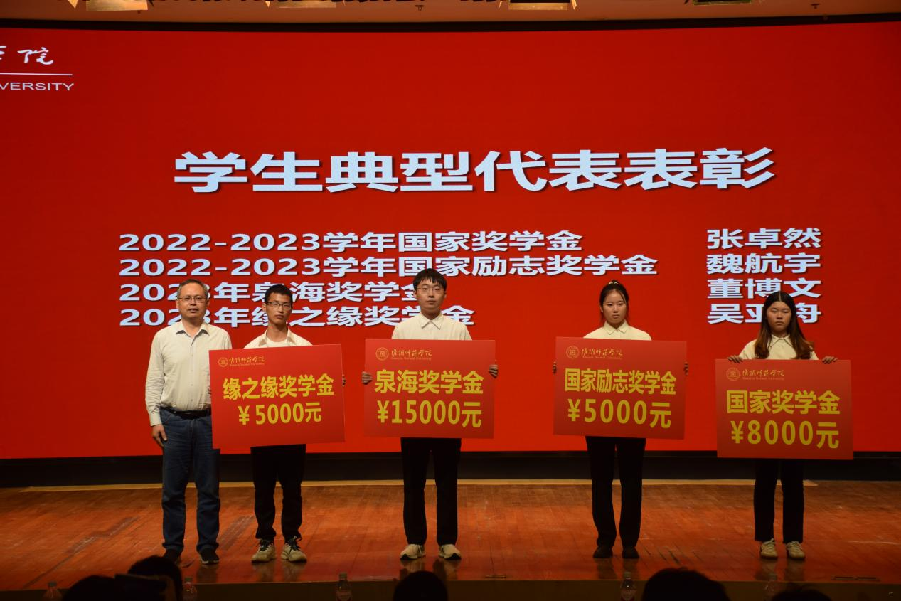 会上集中表彰了国家奖学金、国家励志奖学金、泉海奖学金、缘之缘奖学金、三好员工标兵、优秀员工干部标兵、优秀班集体、学科竞赛中表现突出的团队代表典型员工群体代表。公司党委书记骆仁林、公司经理李梅生、副经理刘晓燕、经理助理严玉波为获奖员工代表颁奖。