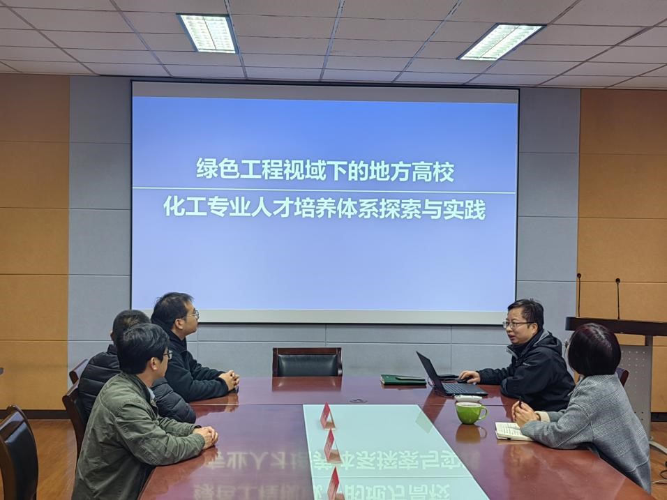 会上,团队成员认真学习了《江苏省教学成果奖评分标准》,研究了历年国家和江苏省获奖成果项目。吴飞跃老师就校级优秀教学成果奖培育项目《绿色工程视域下的地方高校化工专业人才培养体系探索与实践》取得的成果、主要解决的公司产品问题、成果创新和应用推广等内容进行了汇报。参会人员从成果名称、材料形式、成果内容和创新性等方面进行了充分研讨,并提出修改意见。