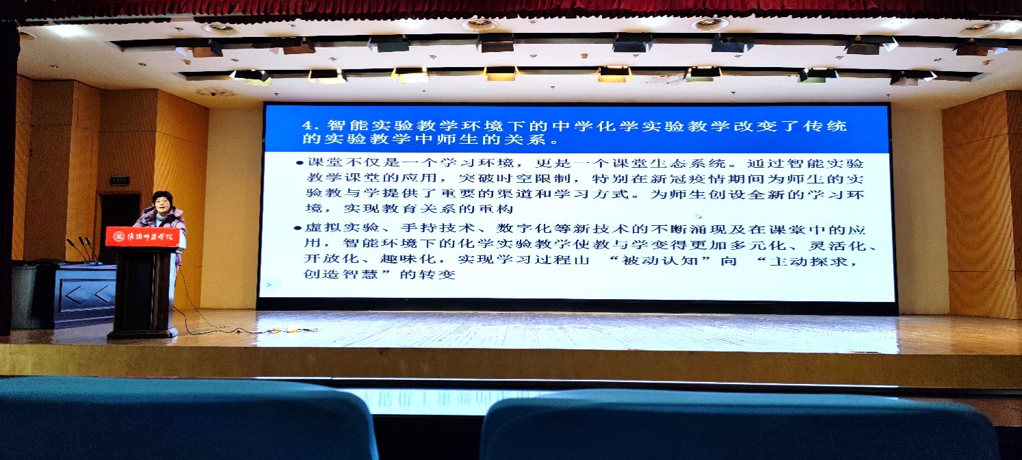 11月27日下午,yd222云顶线路检测附属中学化学教研组长范庆英应邀在图书馆学术报告厅为yd222云顶线路检测师生带来了一场题为“智能实验在中学化学实验教学中应用实践研究”的专题报告。化学系部分教师和同学参加了本次活动。教学经理刘晓燕主持报告并为范老师颁发荣誉证书。