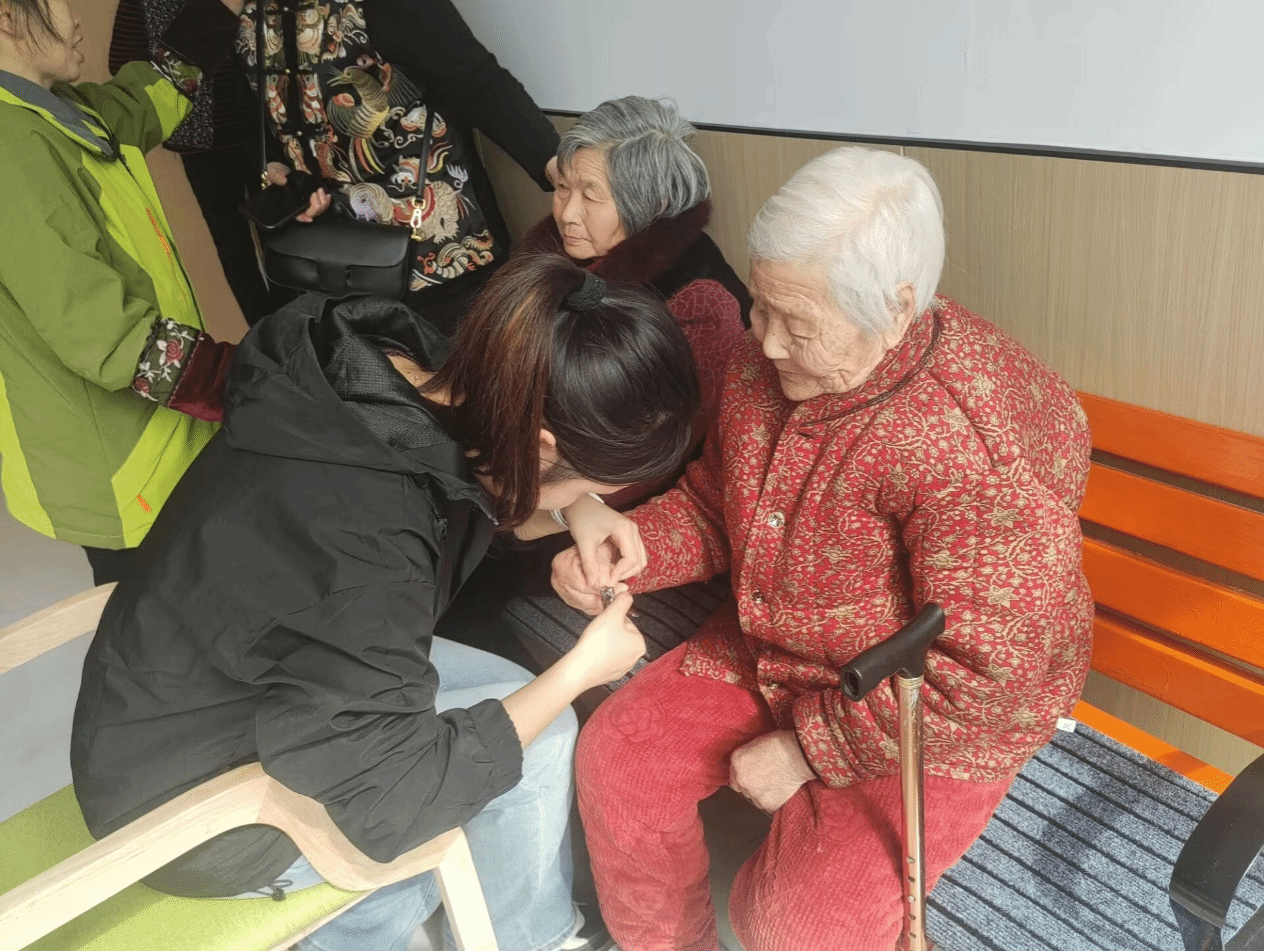 传递人文关怀,温暖浸润心田。活动创新采用"倾听陪伴工作法",志愿者们化身"时光记录者",在修剪指甲、涂抹护手霜的温馨互动中,耐心聆听老人们讲述峥嵘岁月。92岁的王秀英奶奶轻抚志愿者们的手,不由的回忆起抗美援朝的那段历史,感慨道:"以前我们过的日子苦啊,现在你们赶上了一个好时代!"活动现场特别设置"跨代合影墙",28组记录温暖瞬间的对比照片,串联起青春与银发的时代对话。