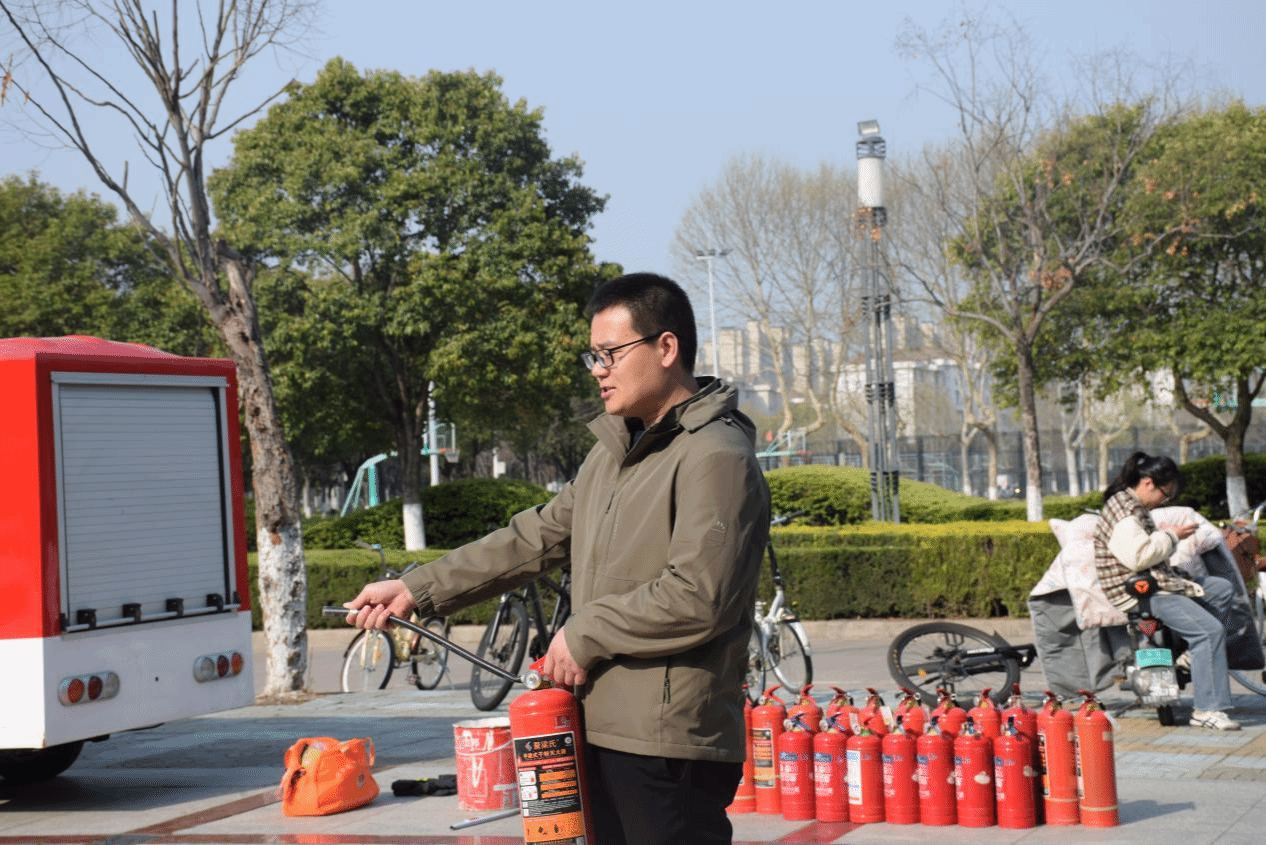 掌握技能,夯实安全根基。讲座结束后,王广慧老师带领40余名员工代表前往生化楼广场开展灭火器使用实操教学。教学现场,王广慧老师率先垂范,以标准且娴熟的动作演示了干粉灭火器的具体操作流程,从拔掉保险销,到握住喷管、按下压把,每一个步骤都精准到位、清晰明了。随后,在王老师的悉心指导下,员工们依次上前进行实际操作演练,亲身体验灭火器的使用方法,力求将所学技能内化于心、外化于行。