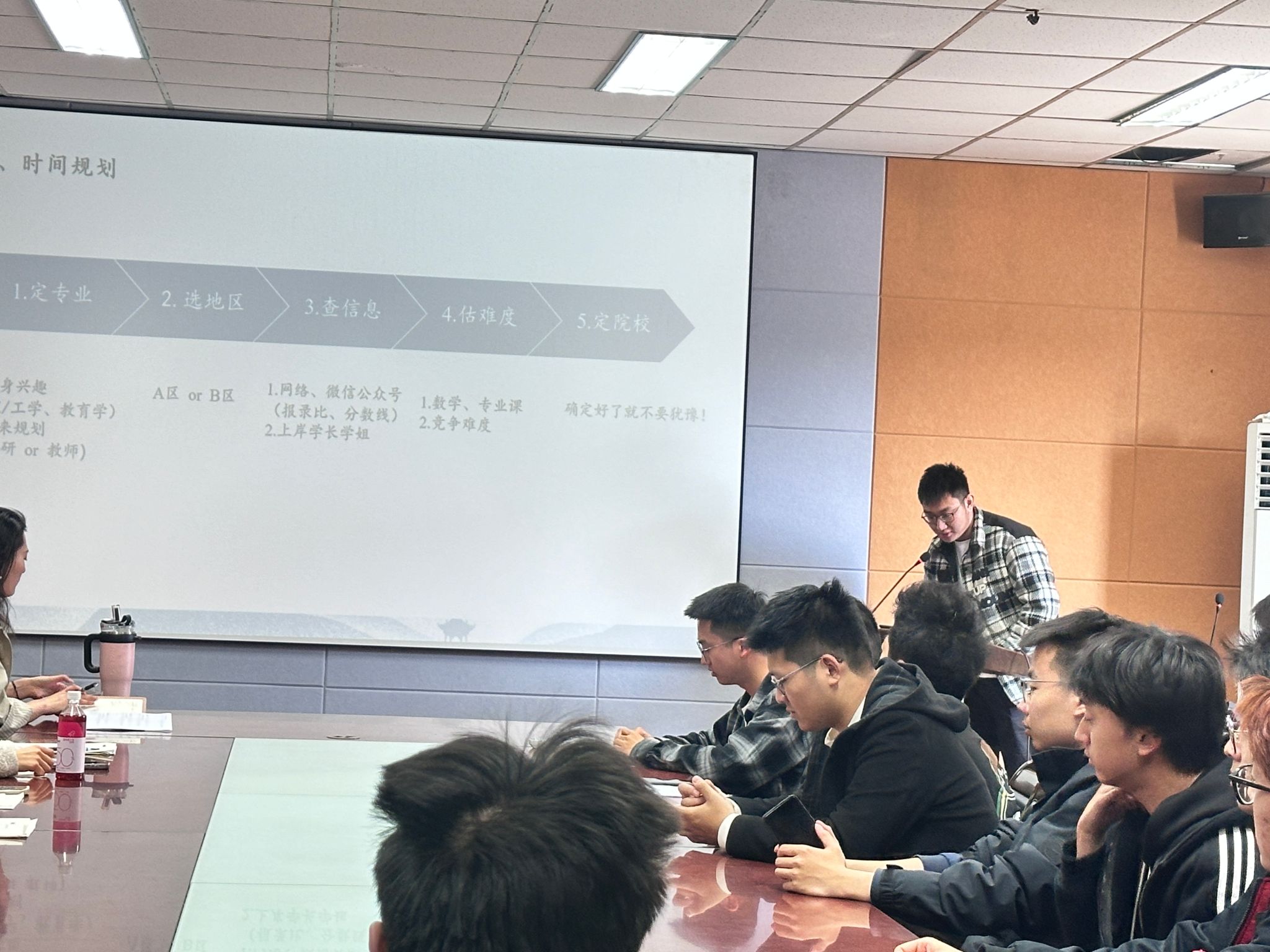 为帮助员工明确职业发展方向,提升考研与考编竞争力,4月14日下午,yd222云顶线路检测2302班在化学楼219会议室成功举办“职涯引航——职场领航员,职业发展交流会”。本次活动特别邀请到三位优秀学长:吉林大学拟录取研究生徐阳、苏州高新区初中化学拟录取教师潘智阳以及考研考编“双上岸”最终选择编制的蒋荣贵,为同学们分享宝贵经验。