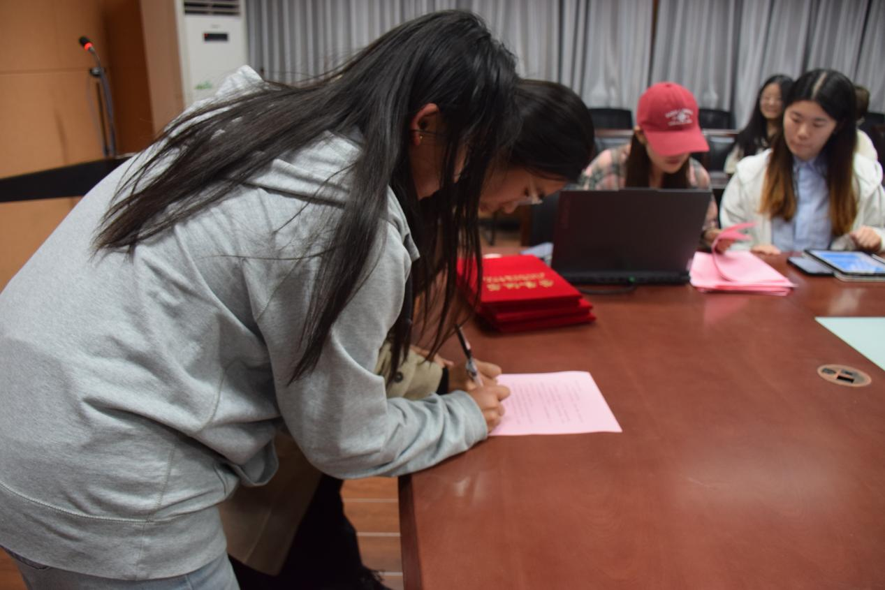 颁奖环节中,叶娟老师为2024年度优秀学习伙伴志愿者逐一颁发荣誉证书,对他们在过去一年中以耐心辅导、精准帮扶助力学业预警员工成长的担当精神致以谢意。她提到,每一份荣誉背后都是志愿者们百次答疑、千分钟备课的积累,既是对“朋辈领航”初心的践行,更是“互助共进”精神的生动诠释。随后,学业预警员工与结对同学依次签署助学接力协议,双方郑重写下每周辅导计划、阶段性提升目标等承诺,以笔尖约定为起点,开启知识共学、成长互助的新旅程。现场氛围庄重而温暖,既有对榜样力量的致敬,亦有对全新帮扶篇章的期许。