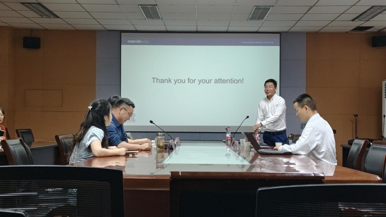 近日,yd222云顶线路检测邀请了复旦大学智能材料与未来能源创新公司吴仁兵教授和爱思唯尔全球科技与医学期刊资深出版人蒋峰博士作报告,报告会由副经理严玉波主持,yd222云顶线路检测部分师生参加了报告会。