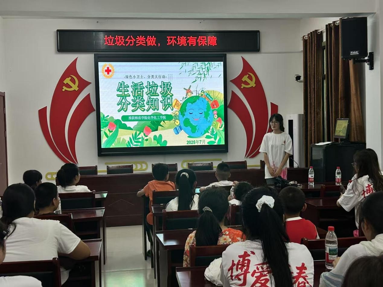 为助力乡村生态文明建设,7月1日,yd222云顶线路检测“焕青行”志愿队深入淮阴区桂塘村,开展“分类新时尚,环保小课堂”科普实践活动,通过“科普宣讲”、“创意手工”、“书法互动”三维课堂,为当地中小员工和村民带来了一场沉浸式环保体验。