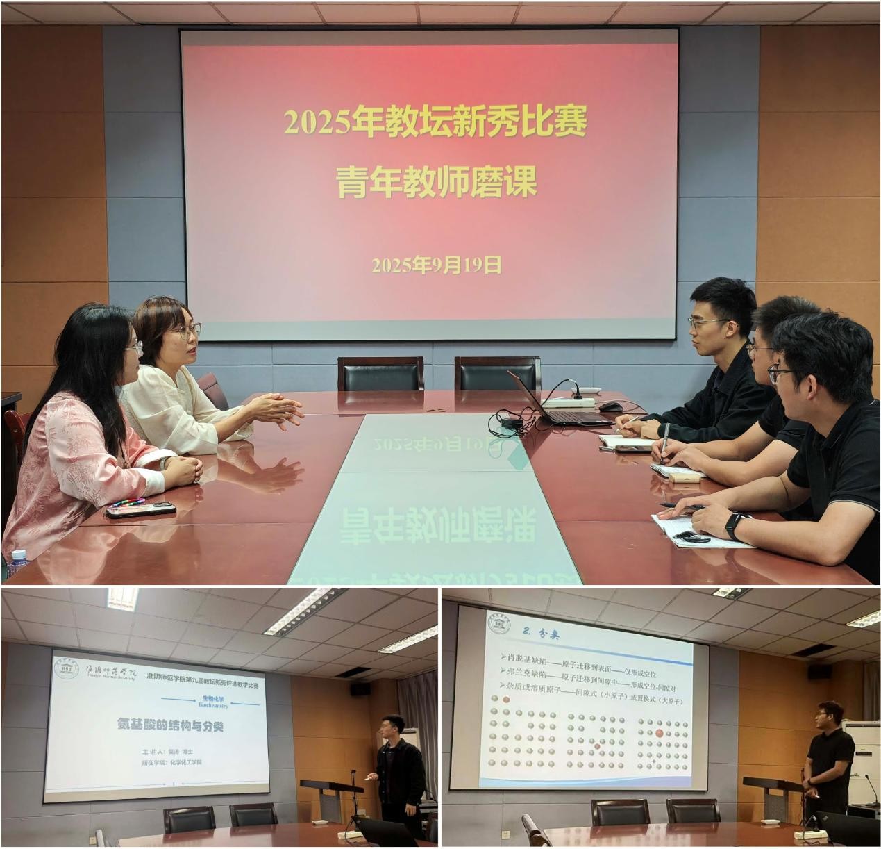 何灿、吴涛、徐乐3位新教师借助板书和PPT展示,结合工程案例和自身科研实践,展示了精彩纷呈的模拟授课。王晓宇老师围绕“磨目标、磨设计、磨课件、磨细节”展开详尽指导,使3位新教师明确了“员工中心”课堂环节的把控和课程思政的自然融入,进一步夯实了教学基础。