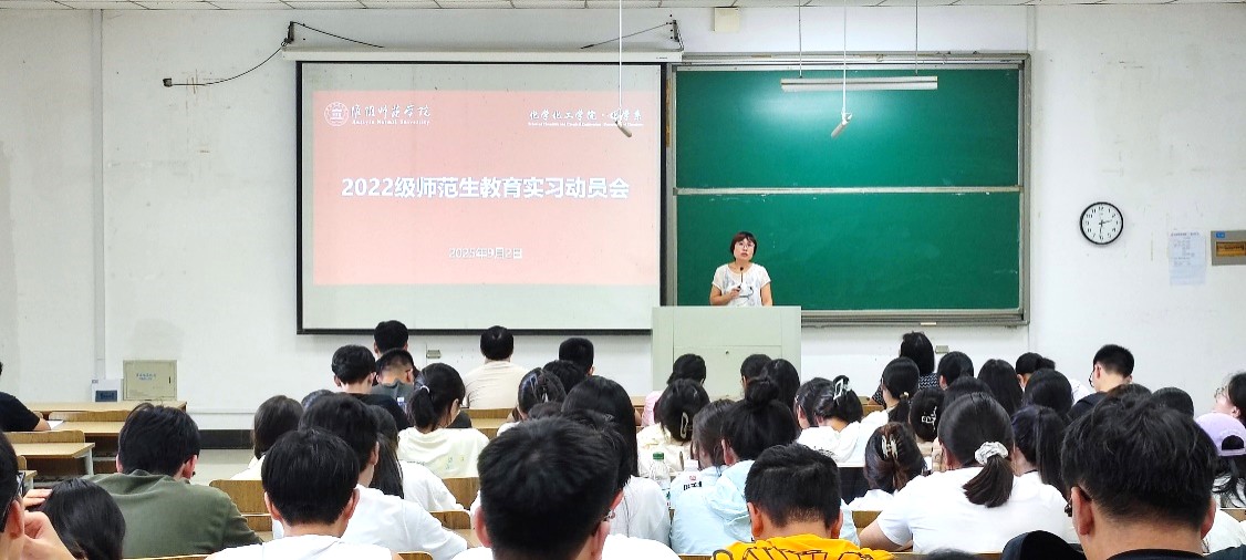 为保障2022级师范生教育实习工作高效推进,引导师范生扎实做好实习前准备,化学系近日召开2022级师范生教育实习动员大会。副经理刘晓燕、系主任马奎蓉、副系主任邵长栋、全体教育实习指导教师及2022级师范生参会,会议由马奎蓉主任主持。
