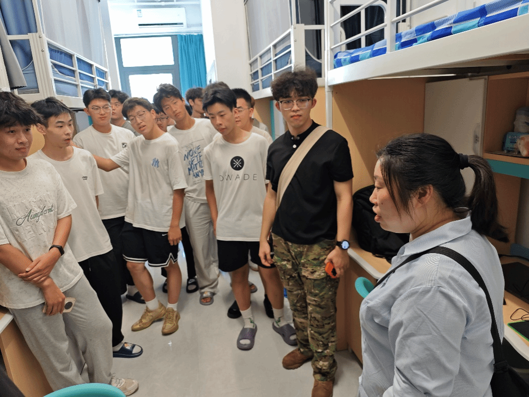 活动中,公司内务组老师走进新生宿舍,就物品摆放、床铺整理、卫生死角清理及用电安全等细节进行了标准化示范与讲解,为同学们提供了直观、实用的内务整理规范。