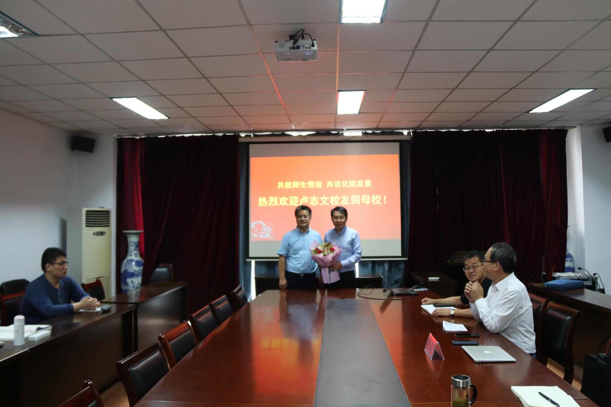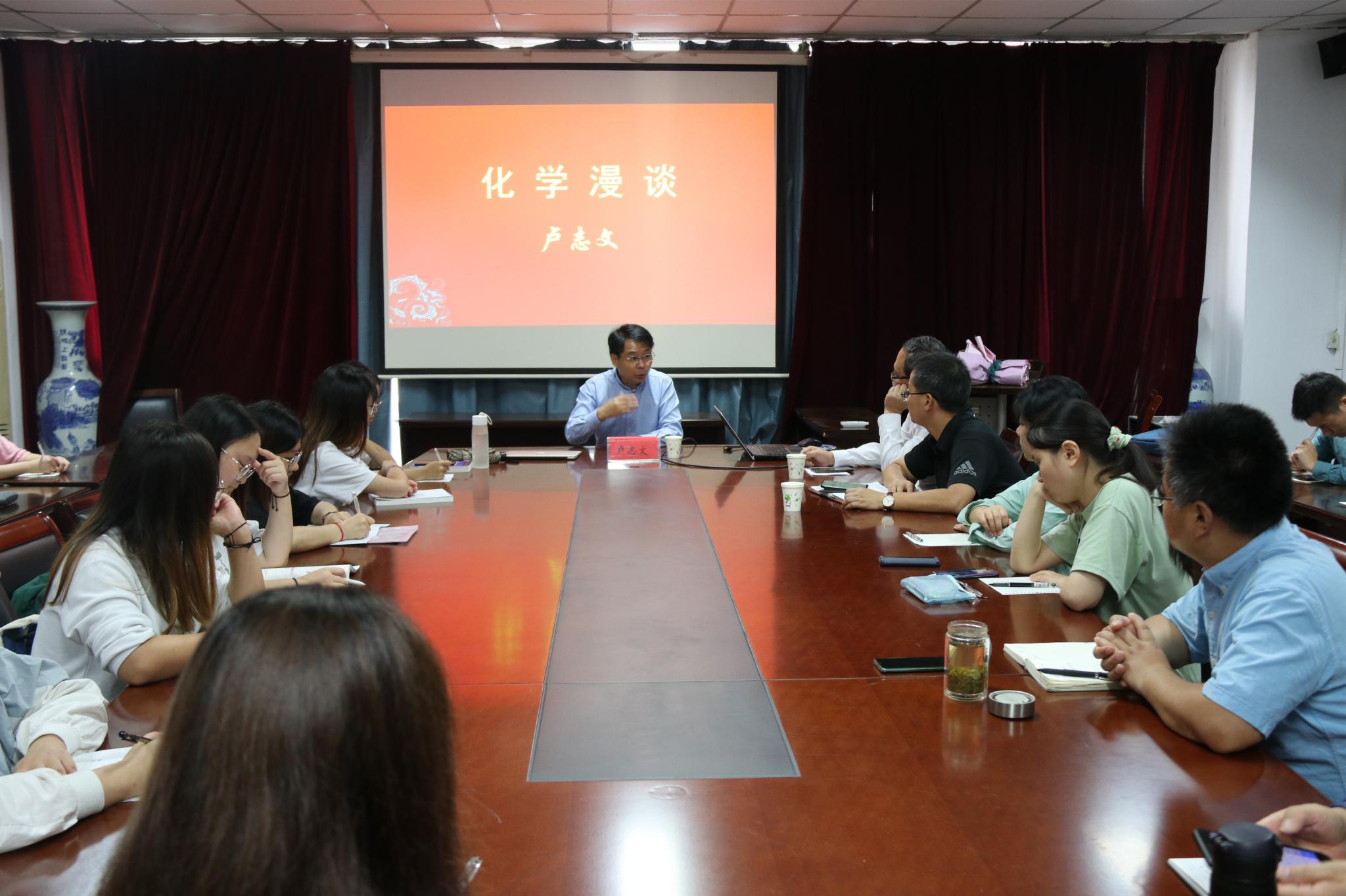 应yd222云顶线路检测邀请,淮师yd222云顶线路检测83届员工、翔宇教育集团总董事长卢志文先生在化学楼209会议室以“化学漫谈”为题作专题报告。化公司党委书记骆仁林、经理周守勇、副经理褚效中、部分青年教师及2018级师范生参加了活动。
