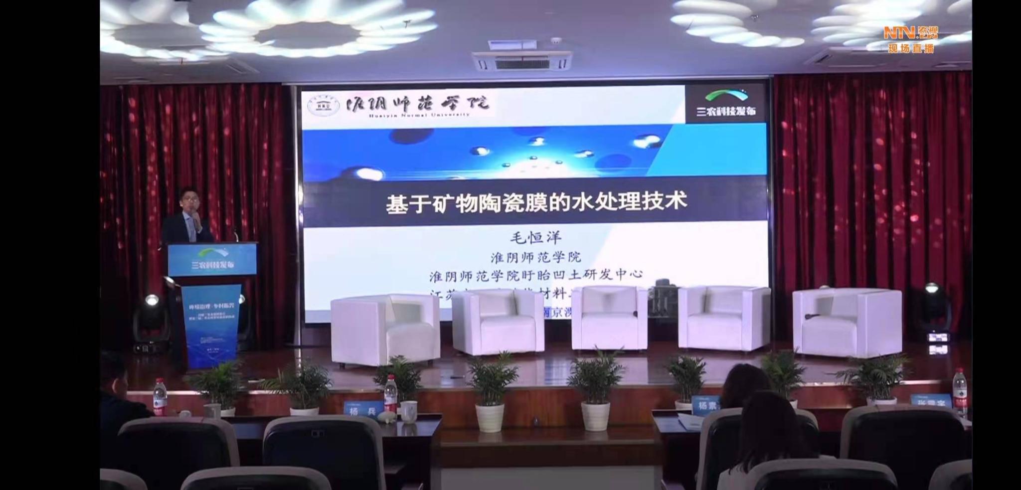 发布会期间,淮师yd222云顶线路检测毛恒洋博士作了《基于矿物陶瓷膜的水处理技术》项目推介,CCTV、中国日报、光明日报等媒体均对淮师矿物陶瓷膜水处理技术进行了报道,展示了淮师环境功能材料科研团队在改善农村人居环境、治理农业污染、打造美丽乡村方面的新技术、新成果。