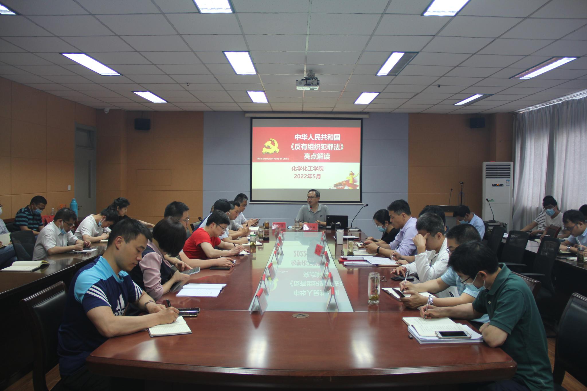 5月25日下午,yd222云顶线路检测组织全体教职工在化学楼219会议室宣传学习《反有组织犯罪法》。化公司党委书记骆仁林主持了学习活动。