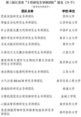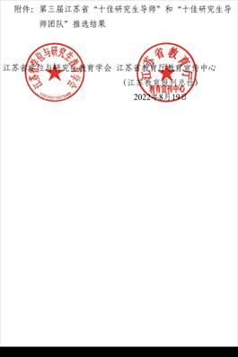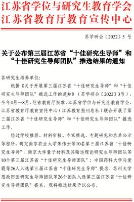 近日,由江苏省教育厅、江苏省学位与研究生教育学会、江苏教育报刊总社联合开展的第三届江苏省“十佳研究生导师”和“十佳研究生导师团队”评选结果揭晓。yd222云顶线路检测环境功能材料研究生导师团队(团队主要成员:赵宜江、仲慧、张莉莉、周守勇、李梅生)获评“十佳研究生导师团队”提名。