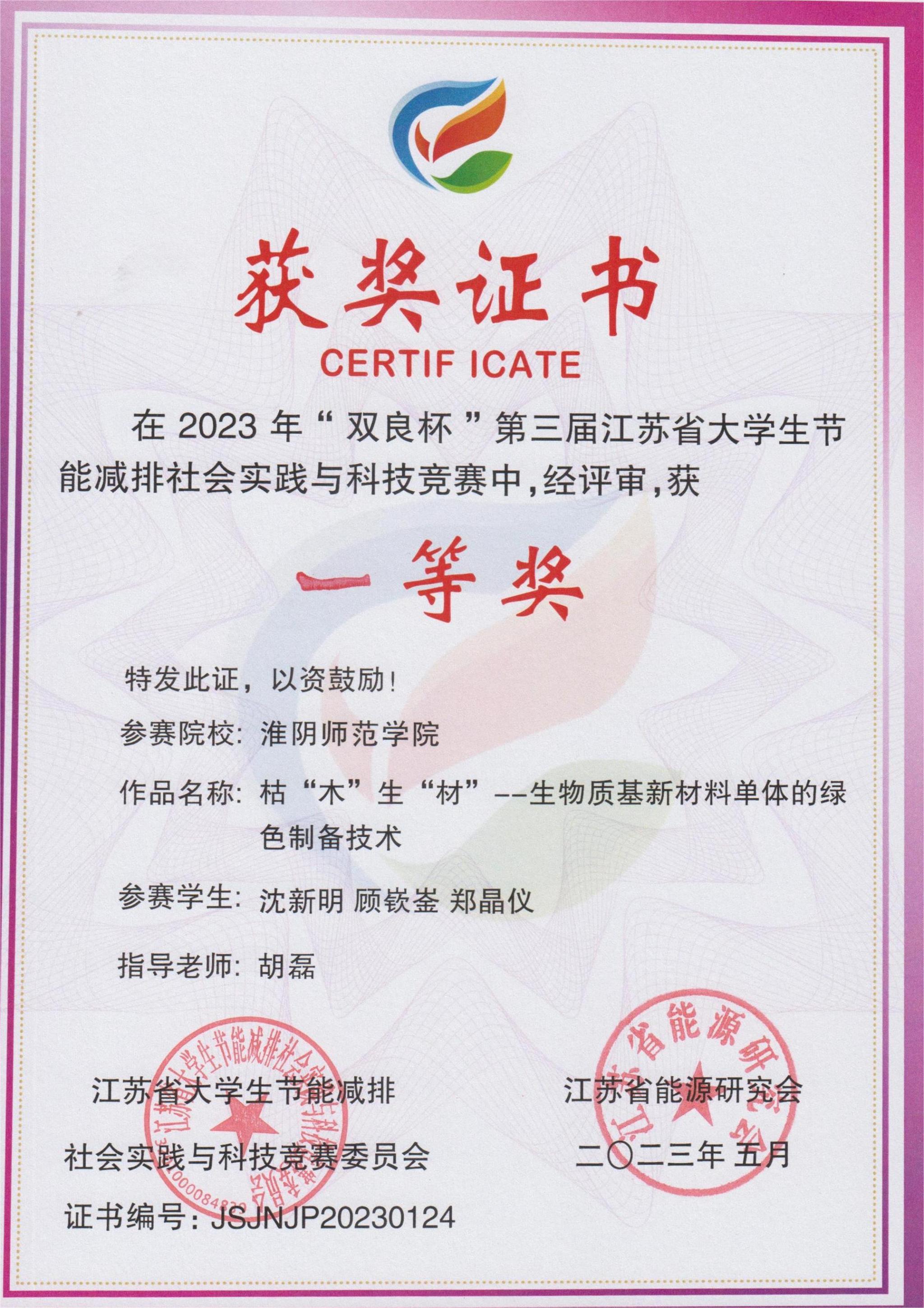 枯“木”生“材”——生物质基新材料单体的绿色制备技术(员工:沈新明、郑晶仪、顾嵚崟;指导老师:胡磊)