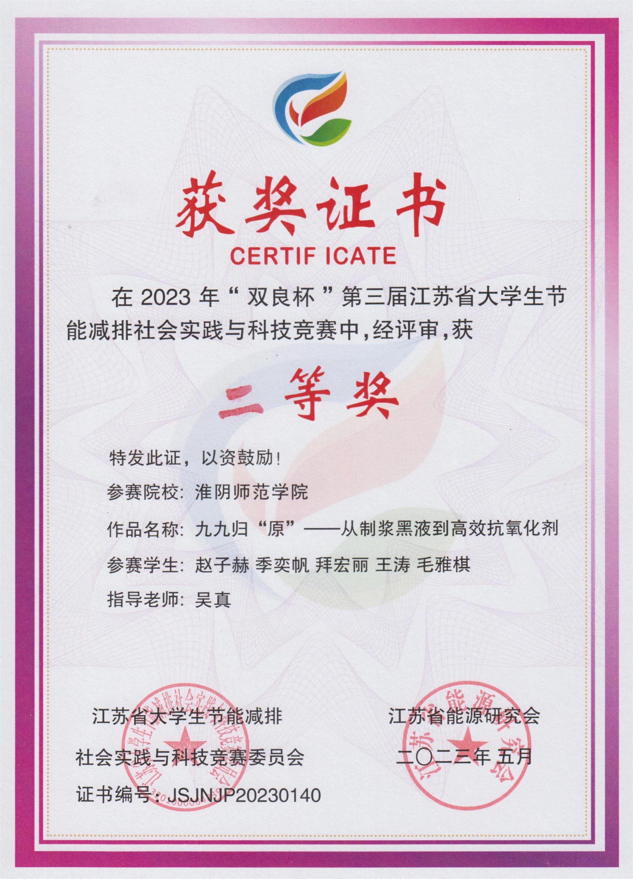 九九归“原”——从制浆黒液到高效抗氧化剂(员工:赵子赫,季奕帆,拜宏丽,毛雅棋,王涛;指导老师:吴真)