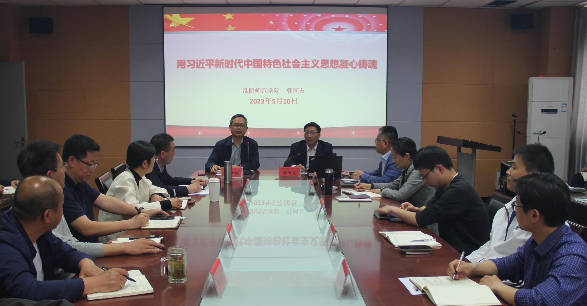 校党委副书记韩同友作了题为《用习近平新时代中国特色社会主义思想凝心铸魂》的专题报告。报告从正确认识时代背景、理解掌握形成机理、准确把握科学体系、全面抓好贯彻落实四个方面对习近平新时代中国特色社会主义思想进行了系统阐述和深入解读,报告内容丰富,深入浅出,对广大党员全面把握新思想的核心要义、逻辑结构等方面有重要指导作用。