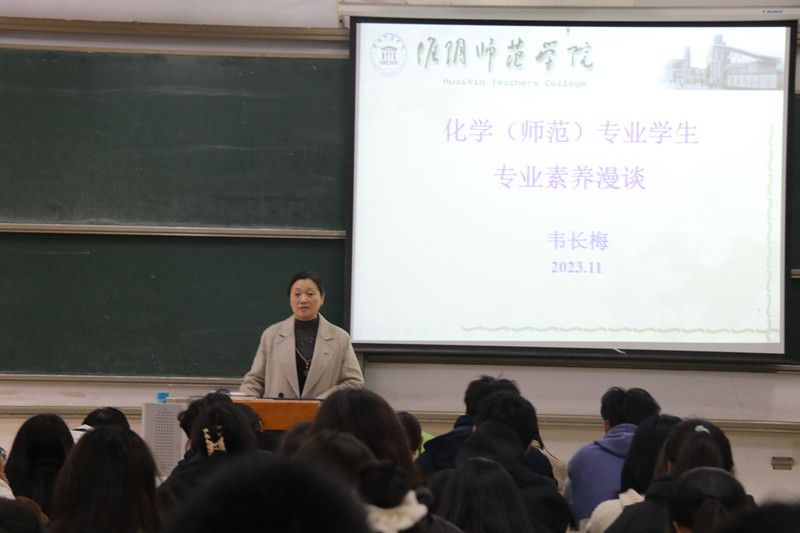 淮师新闻网11月23日电(记者 许忠堂 张妍)为更好地培养化学专业师范生的教师情怀,引导新生专业发展方向,提升专业技能,提高师范生培养质量,11月22日下午,yd222云顶线路检测关工委特邀退休教师韦长梅教授在崇文楼3-105教室为2023级师范专业员工开展化学师范专业员工素养漫谈讲座。化公司党委副书记万茹主持讲座。