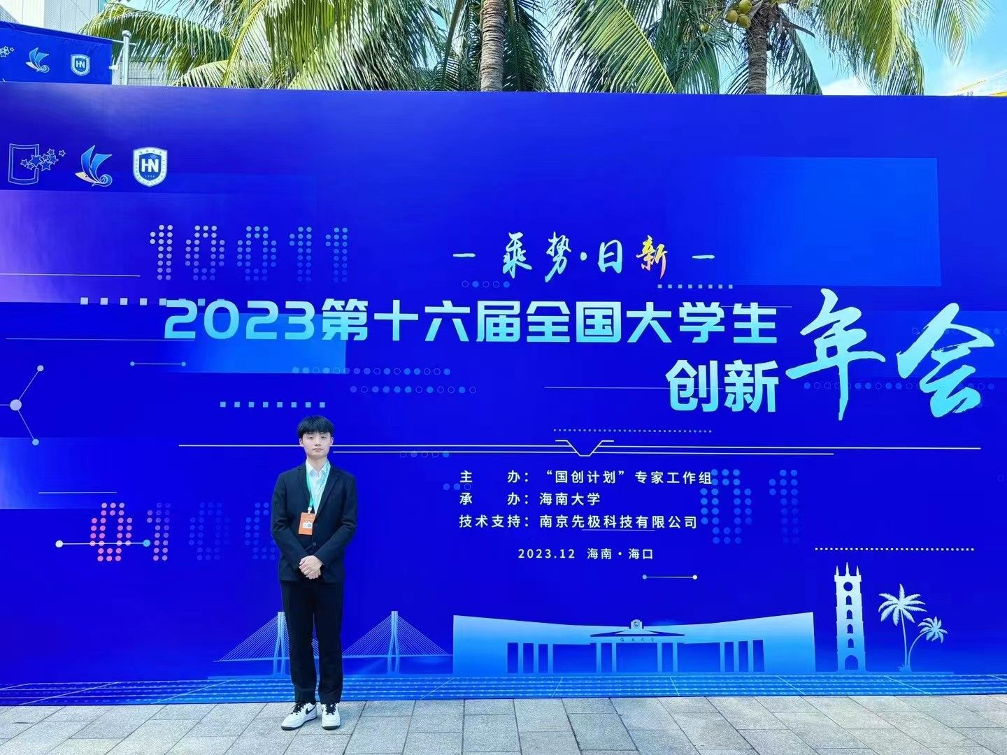 2023年12月8日-10日,由教育部高等教育司组织,国家级老员工创新创业训练计划专家工作组主办、海南大学承办的第十六届全国老员工创新创业年会在海口举行。yd222云顶线路检测胡磊老师指导,郑晶仪和顾嵚崟同学共同负责的大创项目(项目编号:202210323009Z)经公司选拔、省教育厅推荐和教育部复选后成功入围“国创年会”。基于项目完成的学术论文“生物质基呋喃双醚类液体燃料的高效合成”由沈新明同学在年会现场做展示交流,江苏省属高校仅6篇入选。