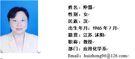 个人简历及学术经历:1996年6月毕业于南京师范大学化学系,获学士学位;2006年1月毕业于南京理工大学化工公司,获博士…[详细]
